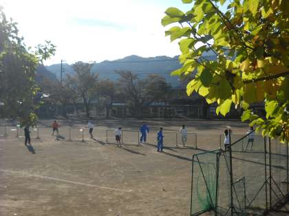 葉も色づく中、今日もソフトテニス部の朝練習です。