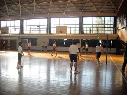 男子は体育館でバレーボールの授業でした。