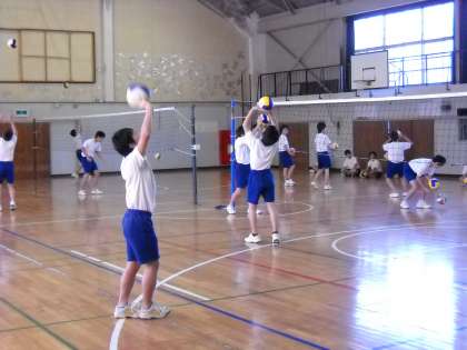 バレーボールのオーバーハンドパスのテストでした。