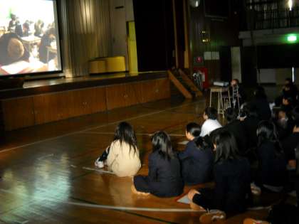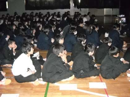 6時間目に体育館で、自分の生き方を考えるためのビデオを全員で見ました。