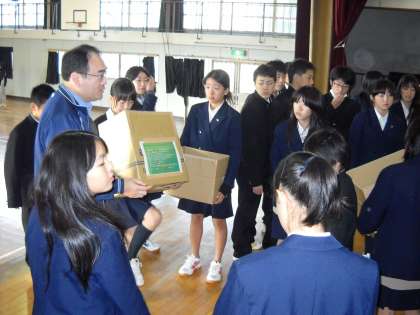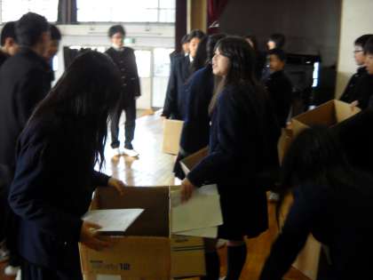 終了後、標語募集の参加賞のファイルが全員に配られました。
