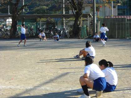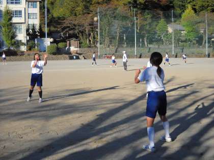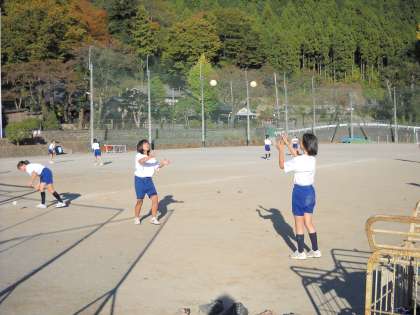 体育の授業では、二つのボールでキャッチボール、という難しい練習をしていました。