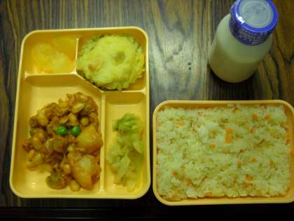 キャロットピラフ・スイートポテトポークと大豆のトマト煮込み・