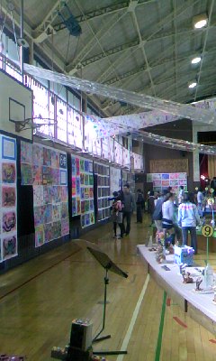 学校のいろいろなスペースを使った展示が工夫されています。