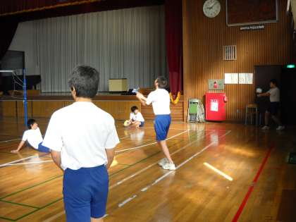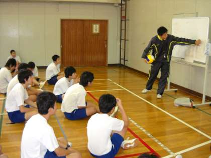 基礎練習が終わって、試合のルールなどの説明に入りました。