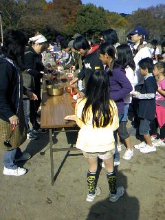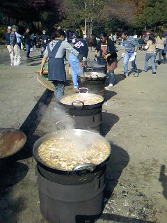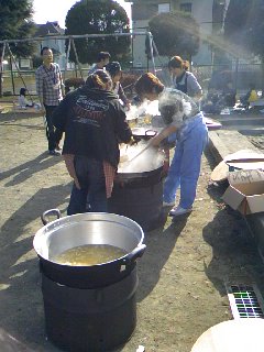 大きな鍋に、毎年恒例の豚汁を作っていました。