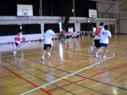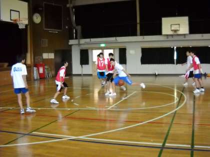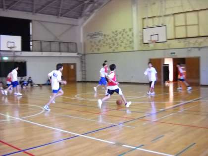 体育館は天候には影響されませんが、バスケ日和のようで、試合形式の練習をしていました。
