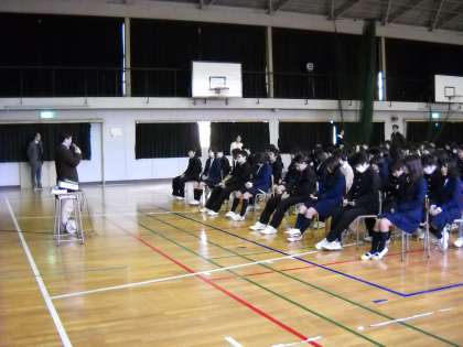 1時間目に体育館で、進路指導の内容で学活を行いました。