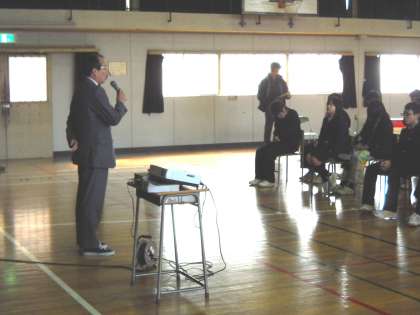 校長先生から面接練習のための講話の後、学級委員代表から、あいさつがありました。