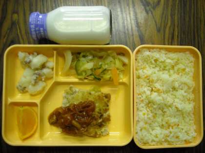 キャロットピラフ・ミートローフきのこソース・じゃがベーコン・