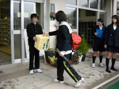 生徒会役員は、朝早くから玄関に立って頑張っています。