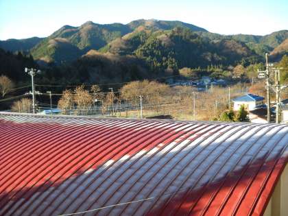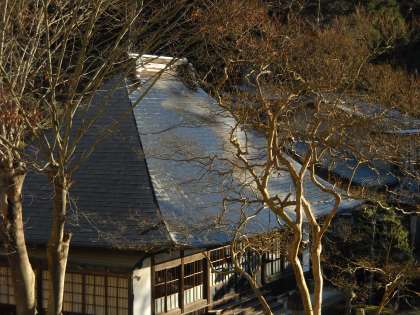 朝日とともに霜が融け始めましたが、日陰の部分が白く残っていました。
