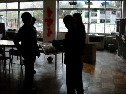 太陽が校舎に差し込んだのは、7時50分でした。