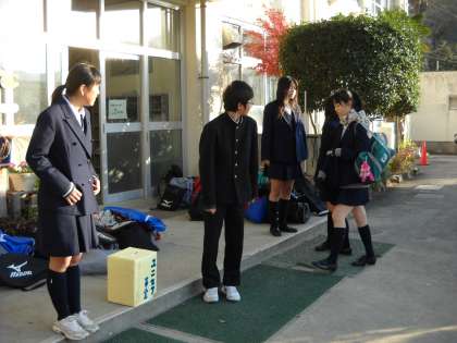 生徒会役員は寒い中、ユニセフ募金最終日に臨みました。