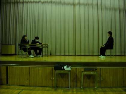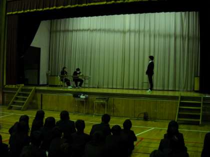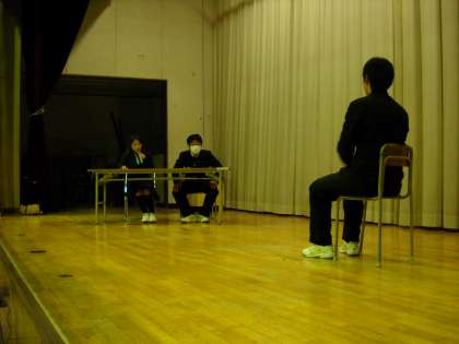 ステージの上で、面接練習の寸劇の中に、今年を振り返った反省を盛り込みました。