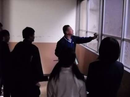 粕谷先生が、窓をきれいにするお手本を示していました。