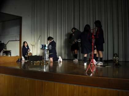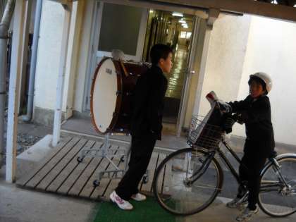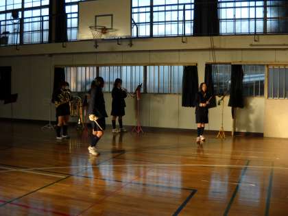 始業式での校歌伴奏のために、朝早くから準備に余念がありません。