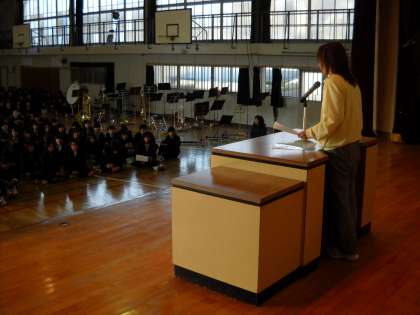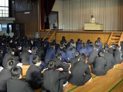 樋口生活指導主任から、二学期の生活を振り返るとともに