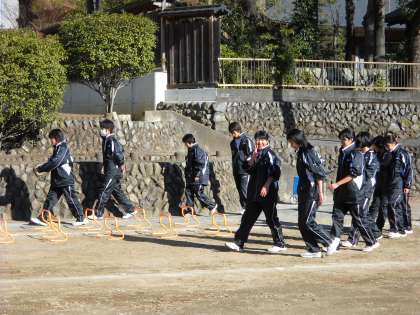 小さなハードルを用いての基礎トレーニングでする