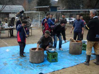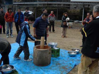 もちつきでは、中学生も参加して盛り上がりました。
