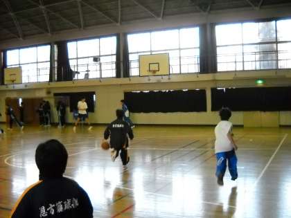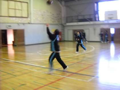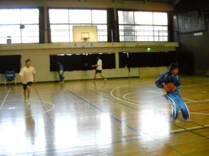 寒い体育館の中では、今日もバスケットボール部が練習です。