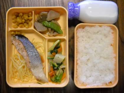 ごはん・鮭のねぎ塩焼き・ペペロンチーノ・