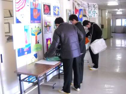 朝から私立高校を受験する3年生は、志望校に出願に行ってからの登校です。