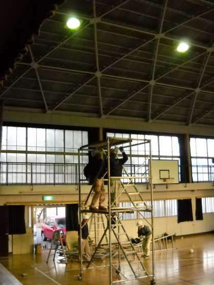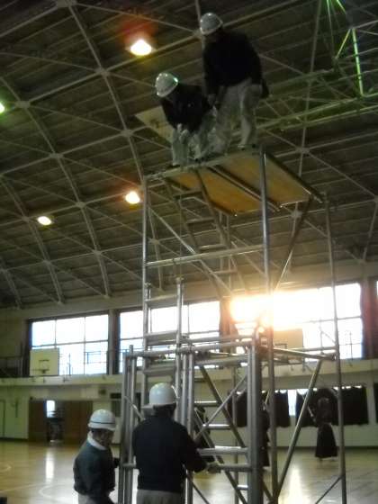 高い所なので、専門の業者さんがしっかりと足場を組んで行いました。