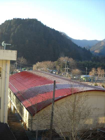 昨日と同じ氷点下3度ですが、体育館の屋根は霜降りでした。