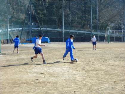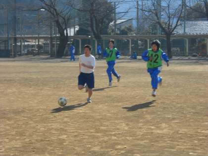 校庭では高野指導のもと、サッカーのパス練習のあとに紅白戦となりました。