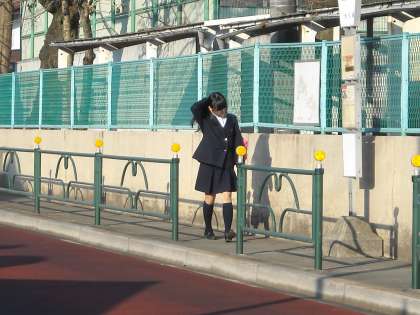 上からも自転車や徒歩で登校してきます。