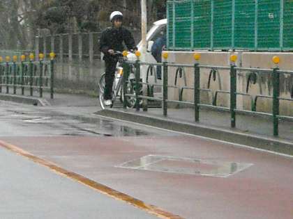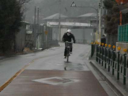 上からも自転車や徒歩で登校してきますが、車も多いので気をつけて下さい。