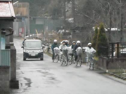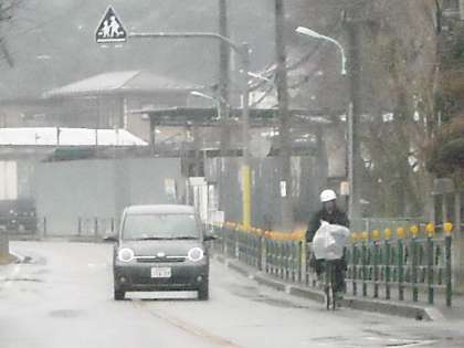 今日は大型車両は通りませんでしたが、乗用車の通行も頻繁です。