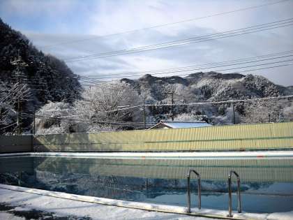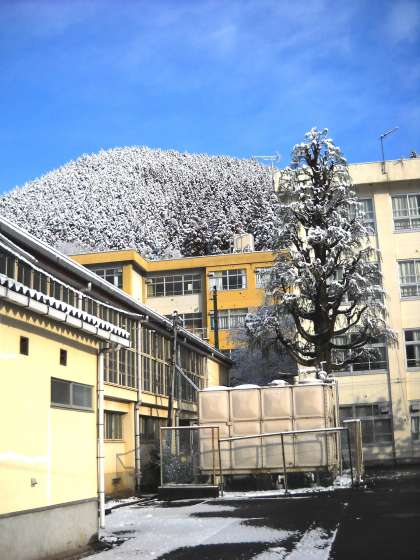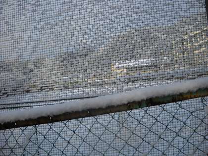 校庭のネットは湿った雪によって。目詰まりをおこしていました。