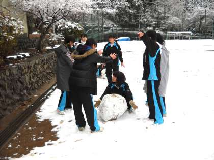 まず足腰を鍛えるために、雪だるま作りがウォーミングアップでした。