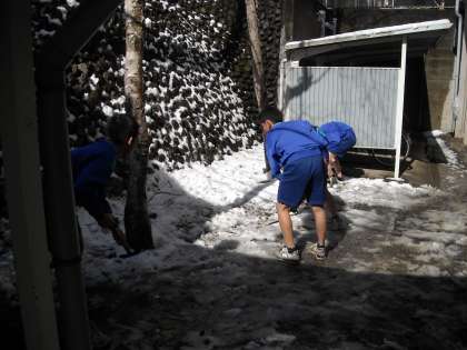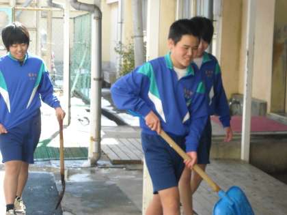 校舎の裏側の日当たりの悪い場所も除雪してくれています。
