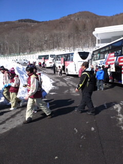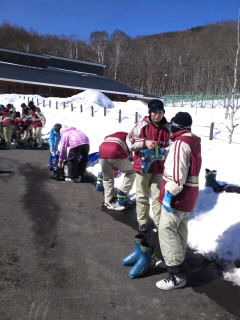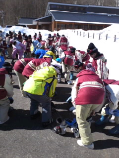 いよいよスキー教室のスタートです。スキー靴をはくことからはじまります。