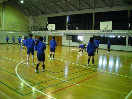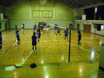 保健体育の授業です。男子は視聴覚室でビデオ鑑賞、女子は体育館でバレーボールです。