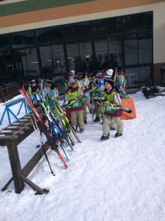 今日の目標は、全員が頂上から滑り降りることです。