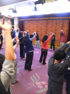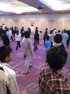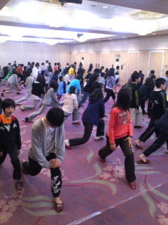 全員でのストレッチから一日がスタートです。発熱者もなく、全員元気いっぱいです。