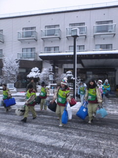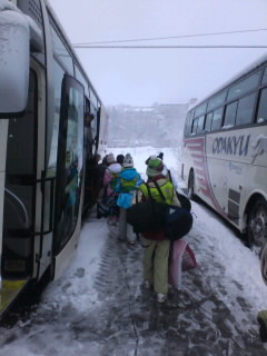 朝で宿舎を引き払います。荷物をすべてバスに積み込んで予定通り宿舎を出発しました。