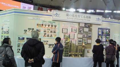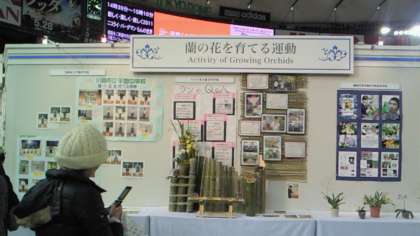 「蘭ふれあい広場」の「蘭の花を育てる運動」コーナーの真ん中に展示されています。