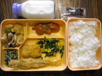 ごはん・ししゃもとイカのフライ・