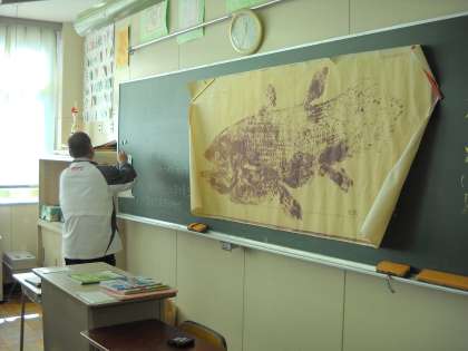 最後に、生きた化石と言われる、シーラカンスの魚拓が登場しました。