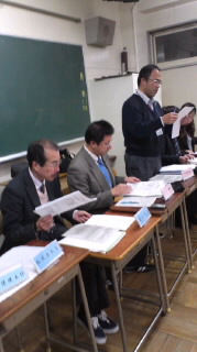 午後7時時から視聴覚室室で行われました。野田副会長の司会で、志村会長と、西校長の挨拶から始まりました。