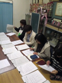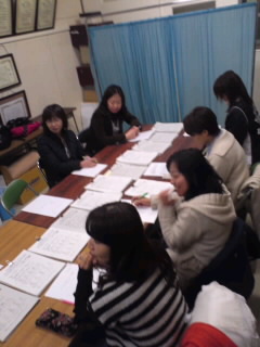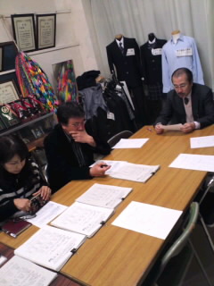 午後6時から応接室で行われました。アンケートの集計結果をもとに今後の見通しが話し合われました。