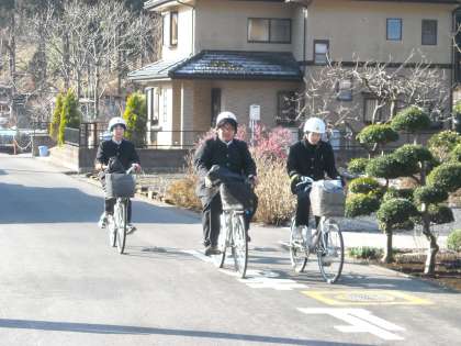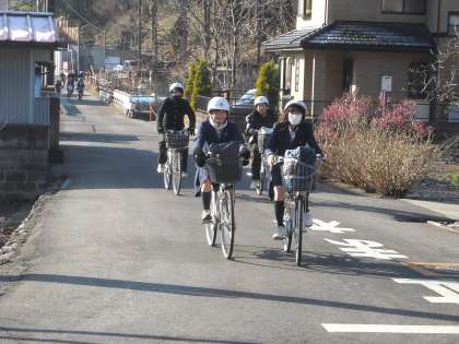 きちんと1列に並んで走行している生徒もいます。