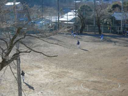 朝日が遅い、グラウンド東側が最後まで練習できそうです。