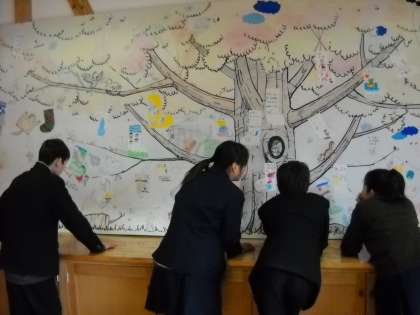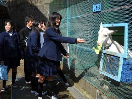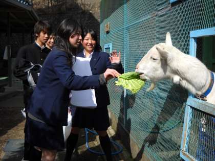 ヤギの二郎君にキャベツをあげて、視聴覚室で待機です。