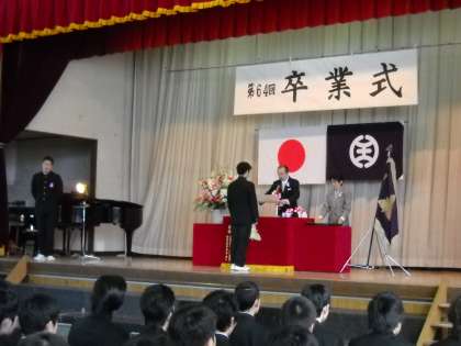 斉唱後、卒業証書授与となります。人数が多いため、最初と最後の生徒の証書のみ読み上げられます。